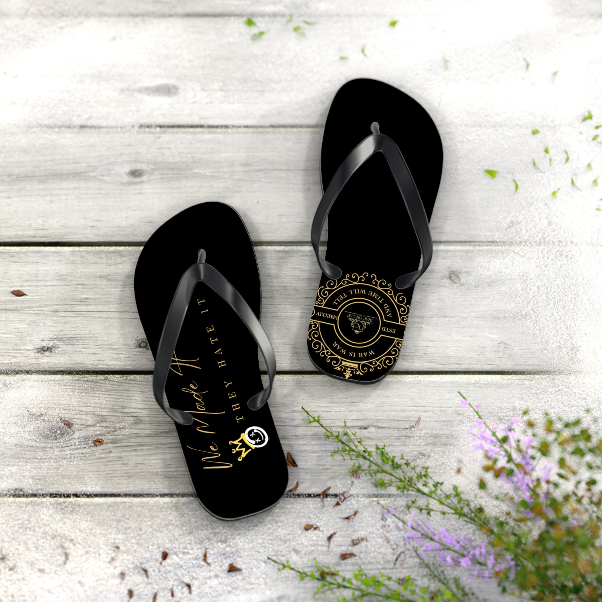 Luxury Statement Flip Flops 'We Made It, They Hate It' Premium Gold Design